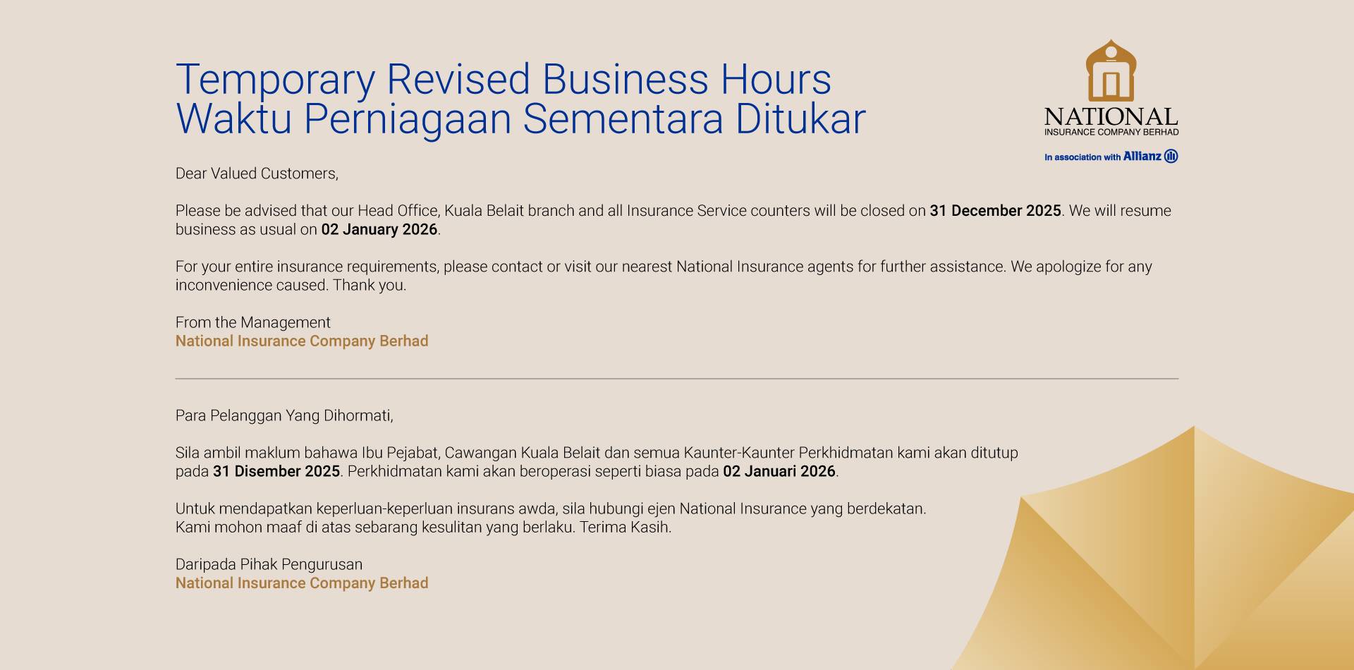Contact a National Insurance Agent, to learn more about your Personal and Business insurance product and solution options, in Brunei.